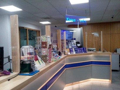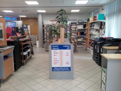 Beratung und Kasse - jetzt mit PlexiglasSo können unsere Kunden sicher mit uns auf den Bildschirm schauen